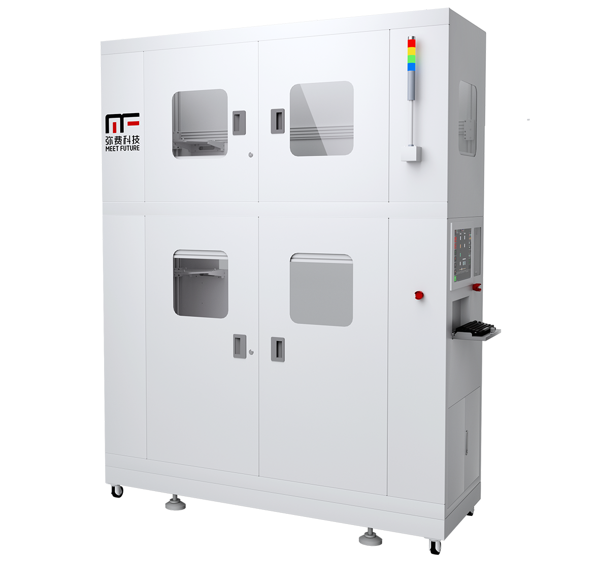 NTB (Near Tool Buffer) is utilized in wafer factories to connect the buffer equipment of the OHT with the loading and unloading ports of machines. This helps reduce machine waiting time and improves machine utilization. The MeetFuture NTB is designed to be compliant with SEMI E15.1 standards and interfaces seamlessly with E15.1 compliant Load Ports.